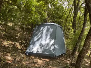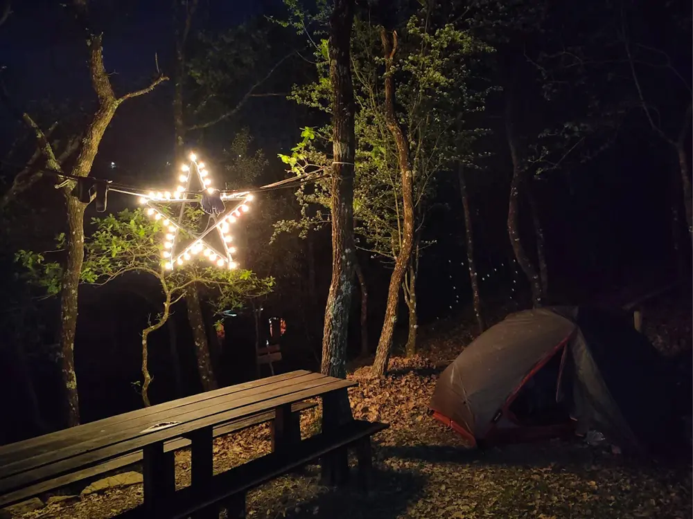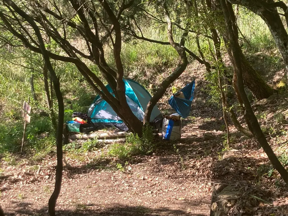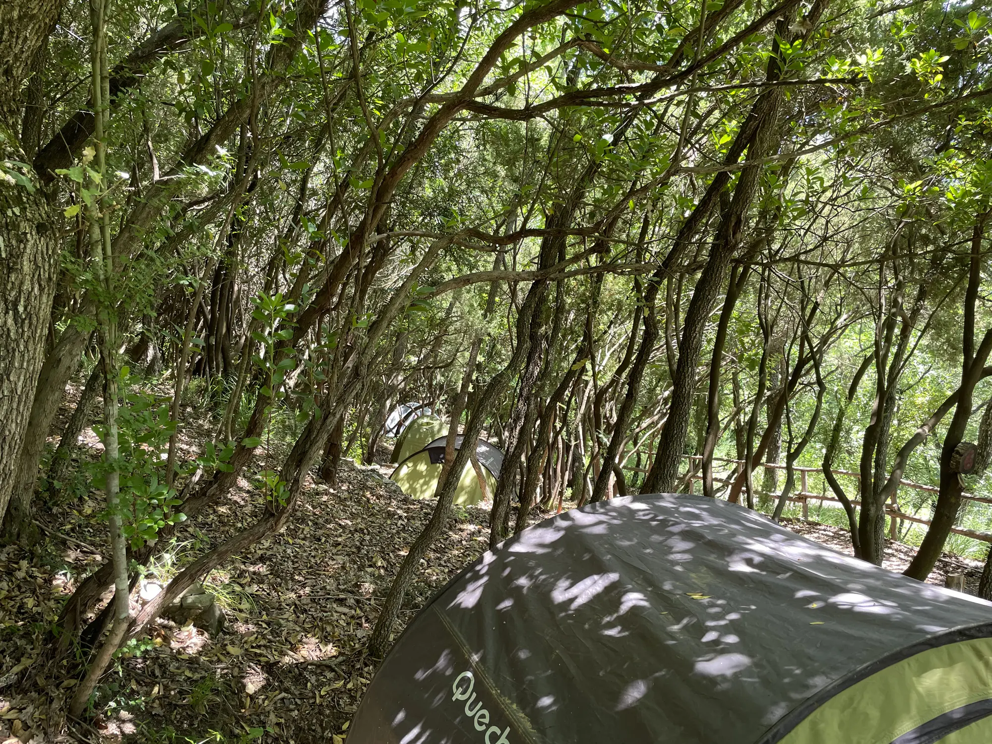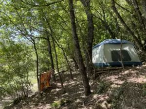L’area campeggio dispone di 10 piazzole per tende di diversa misura, dislocate in più punti lungo il pendio della collina, dentro la folta macchia mediterranea e all’ombra di un querceto. Gli spazi sono ricavati rispettando la conformazione del territorio, senza forzature, in modo che ogni ospite possa sentirsi dentro la natura e trovare il proprio rifugio nel bosco.